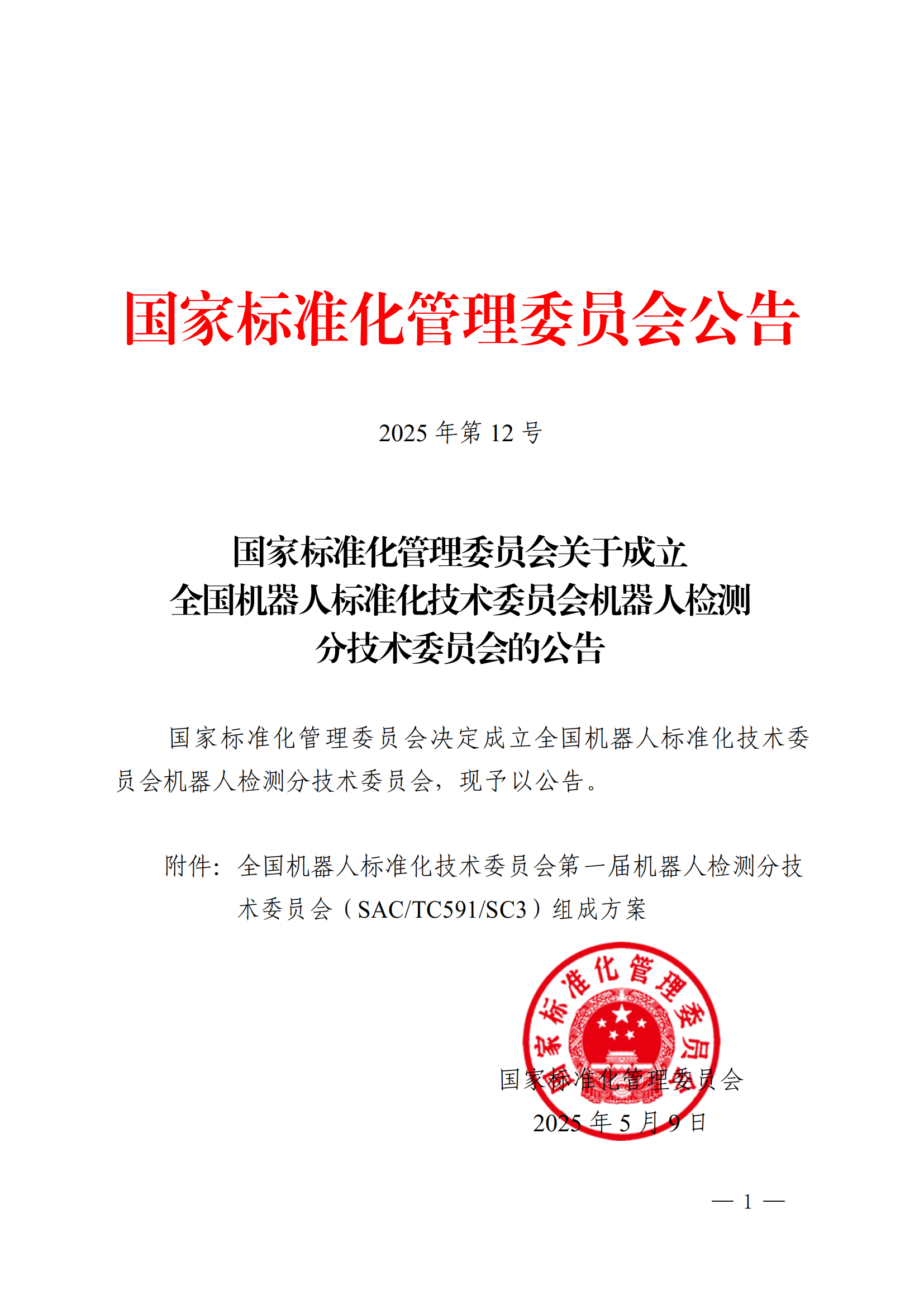 5月9日,国家标准化管理委员会发布《关于成立全国机器人标准化技术委员会机器人检测分技术委员会的公告》,决定成立全国机器人标准化技术委员会机器人检测分技术委员会(以下简称:分技术委员会),主要负责全国机器人检测与评估领域标准化工作,秘书处由上海电器科学leyu.乐鱼承担,我院专家邢琳任委员兼秘书长。
