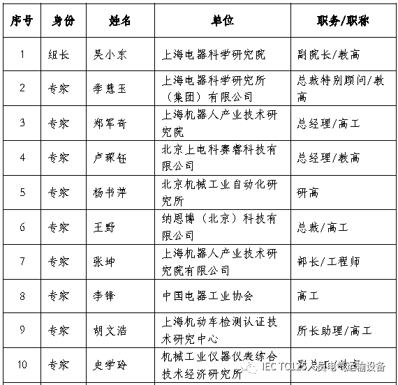 顾问专家组由对产业市场情况、产品技术、相关标准熟悉的技术专家组成,包括电气/机械安全、可靠性、功能安全、电磁兼容、维护、充电技术、关联TC等方面的专家。